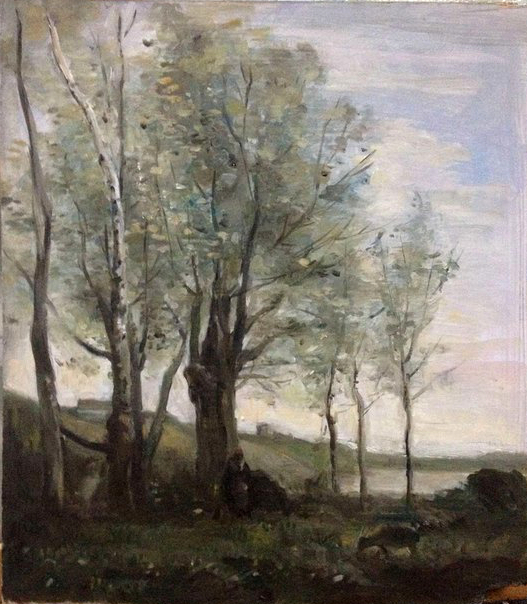 Copie de Corot. Paysanne gardant sa vache a la lisière d’un bois, huile sur bois, 47,5×35 cm, 1865–1870, Hermitage