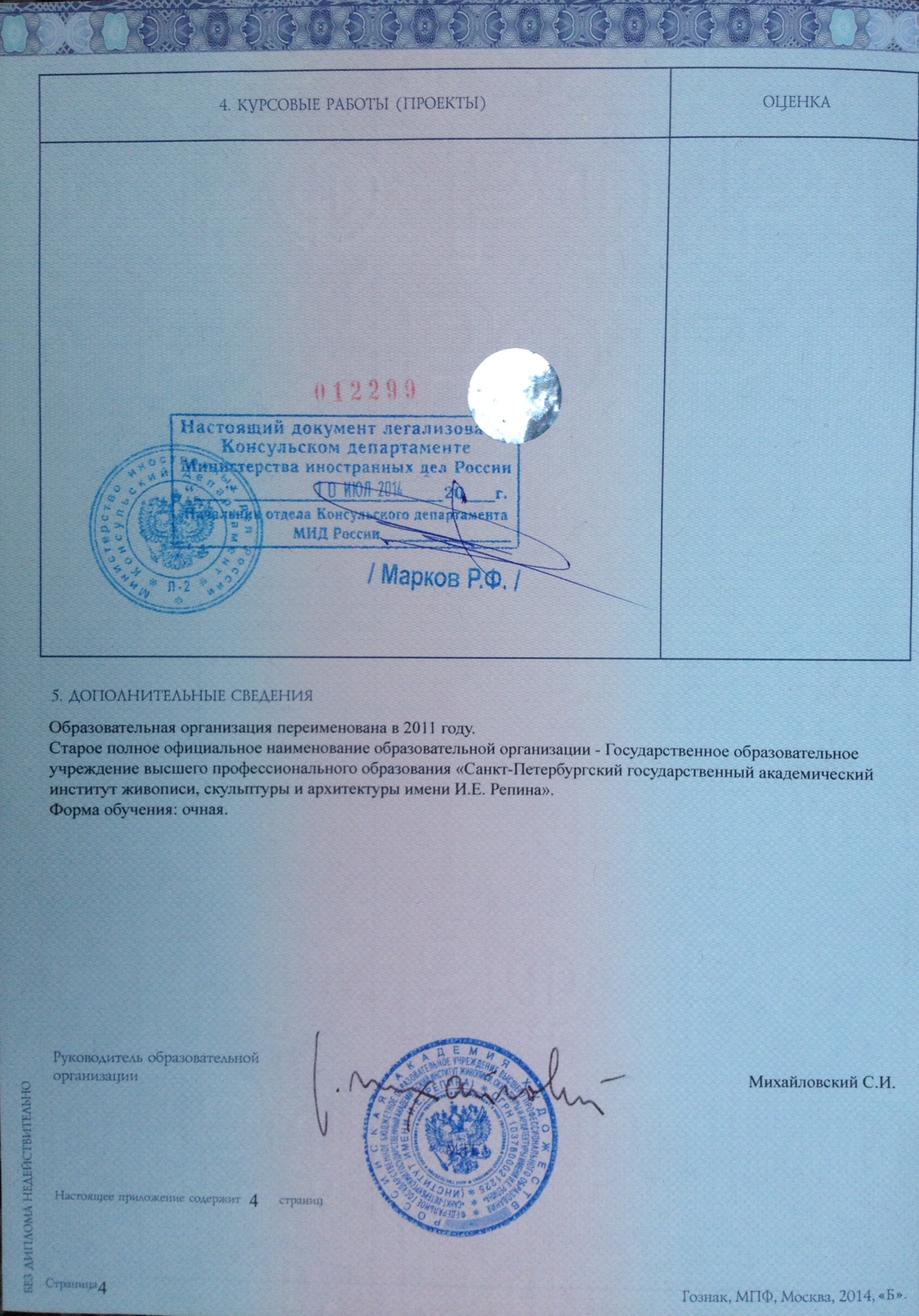 Diplôme. Page du sceau d’originalité.