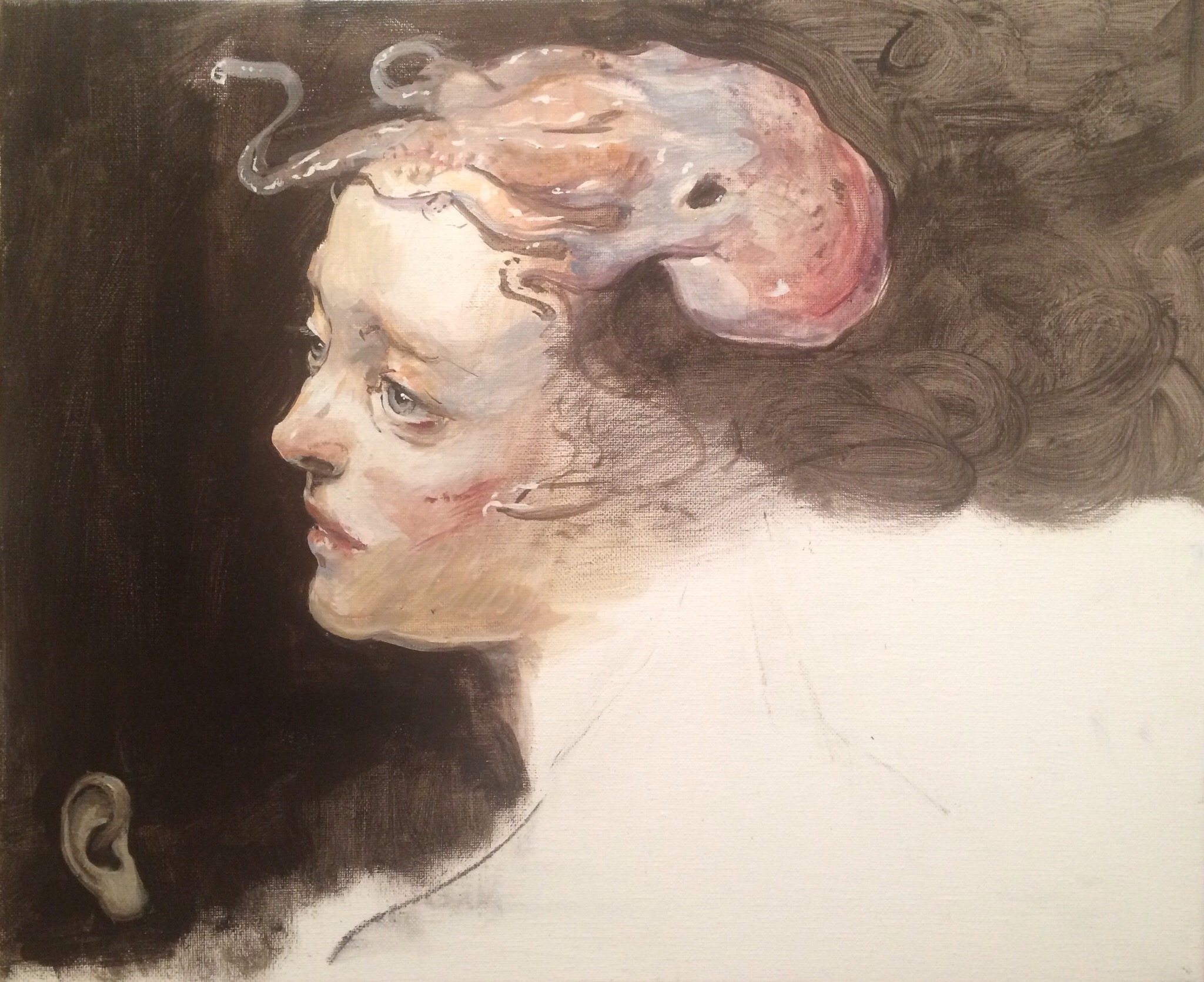 égocentrique absolu. tempera fusain sur toile. 38x46cm