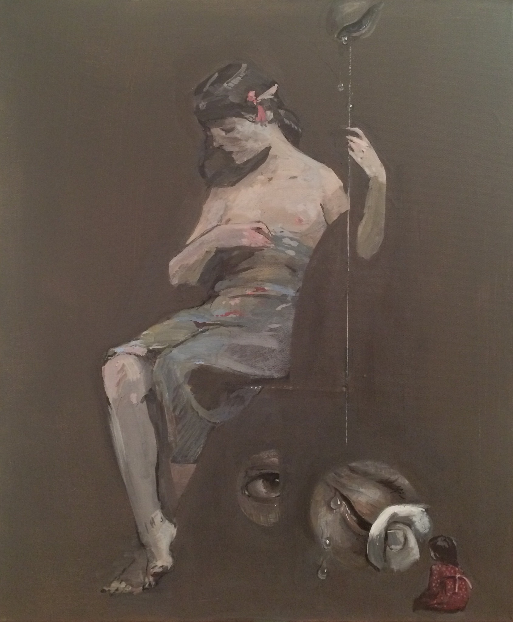 le point cramoisi. tempera fusain sur toile. 50x60cm