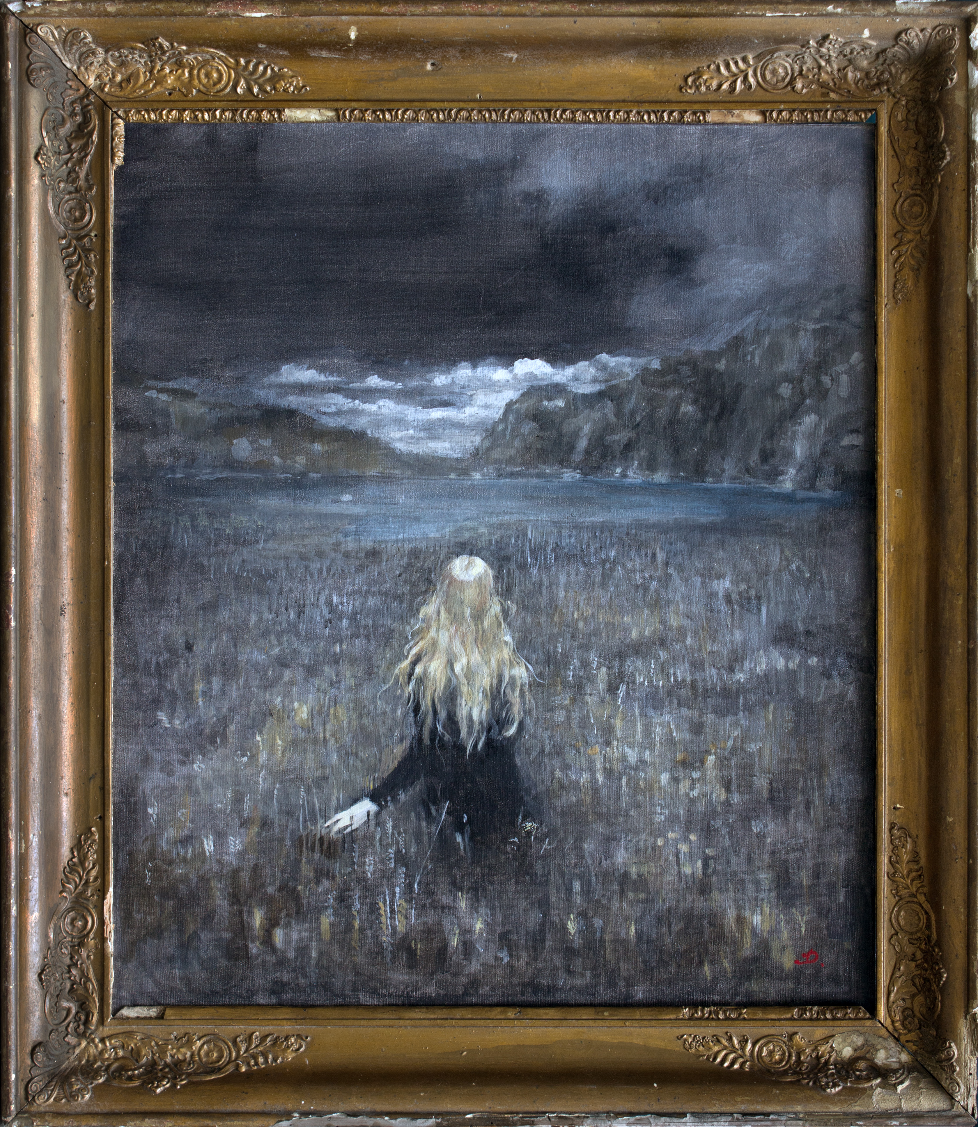 Tempera sur toile, cadre ancien