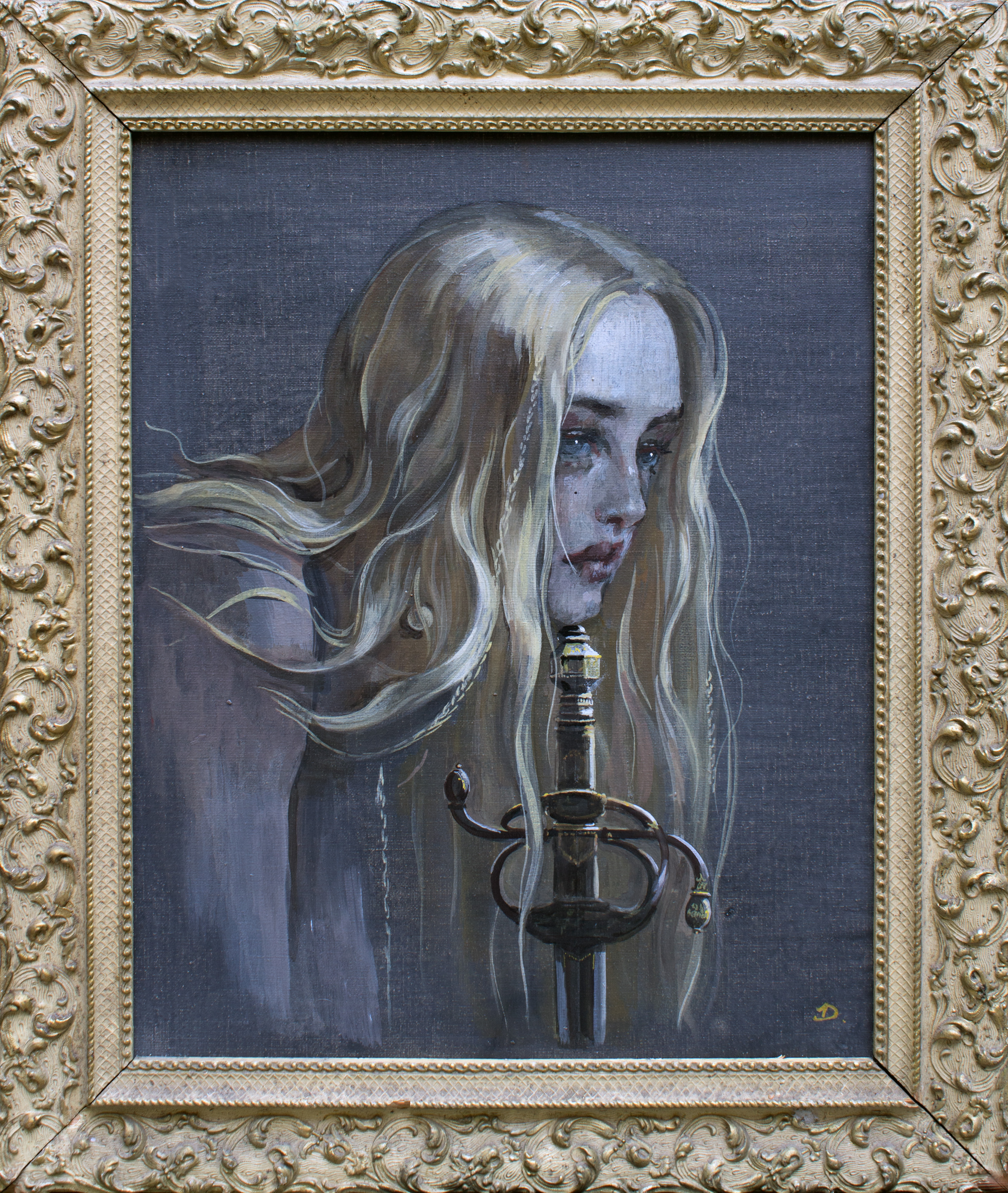 tempera sur toile, cadre ancien