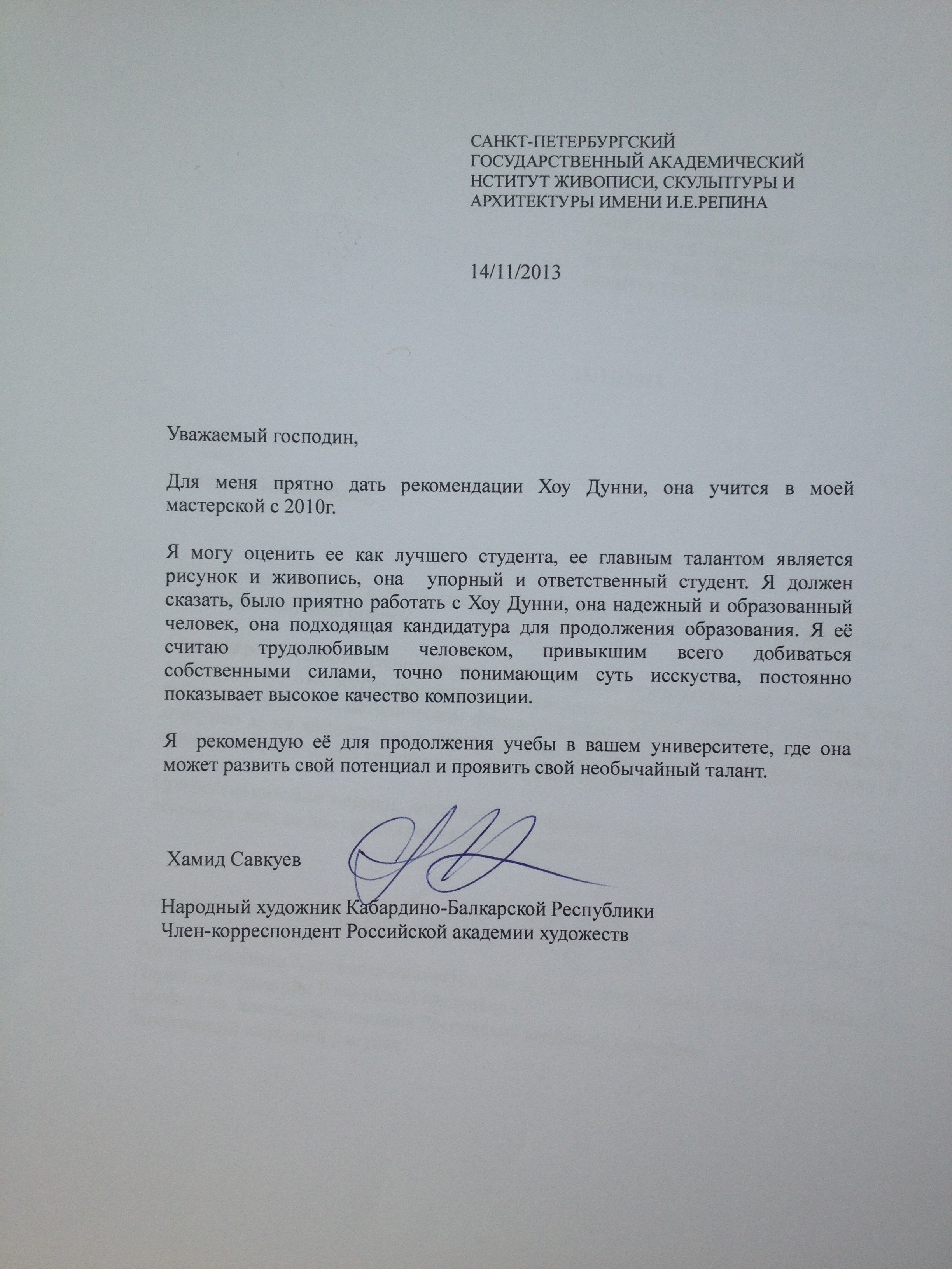 Image précédente Image suivante Lettre de recommandation du professeur Cavkuev Lettre de recommandation du professeur Cavkuev.