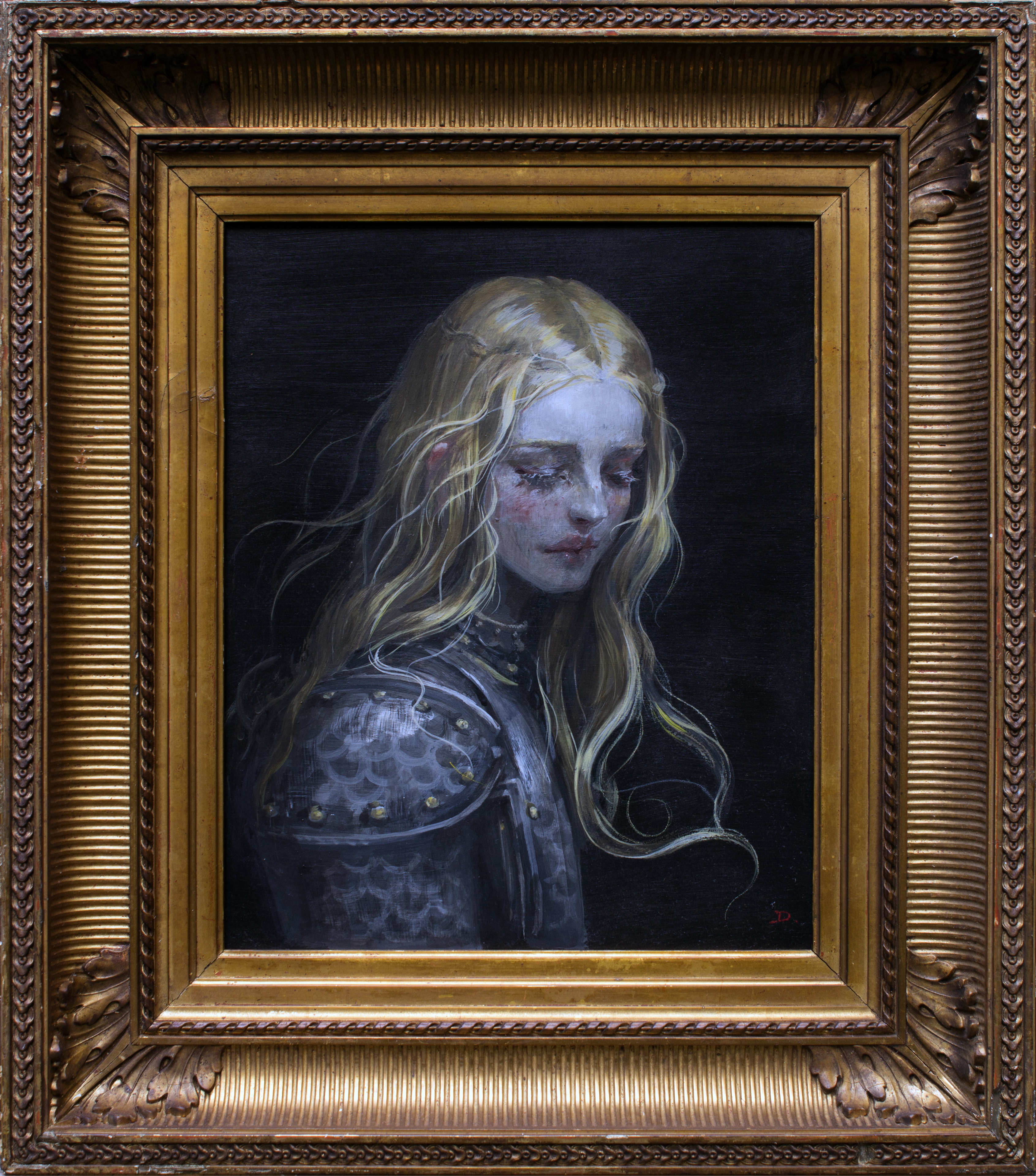 tempera sur toile, cadre ancien