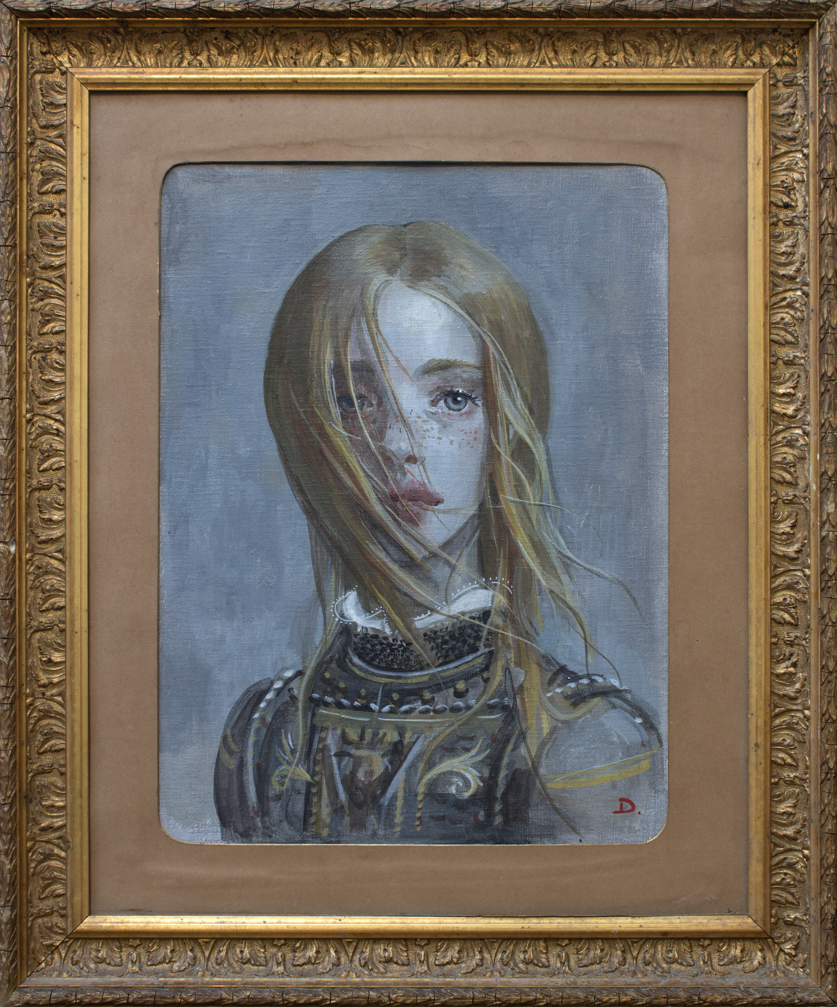 tempera sur toile, cadre ancien