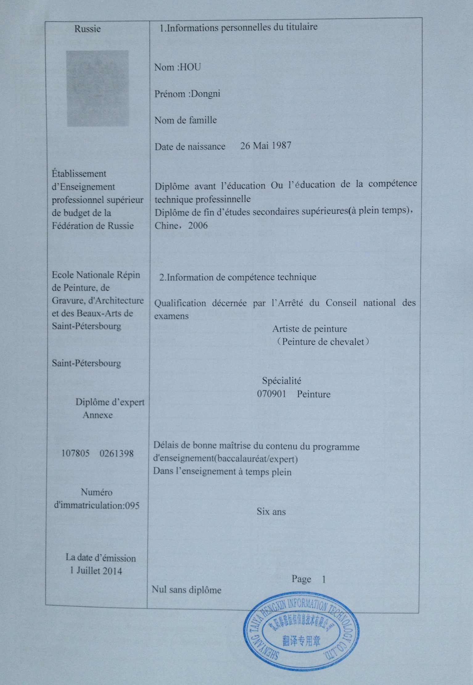 traduction diplome attribution