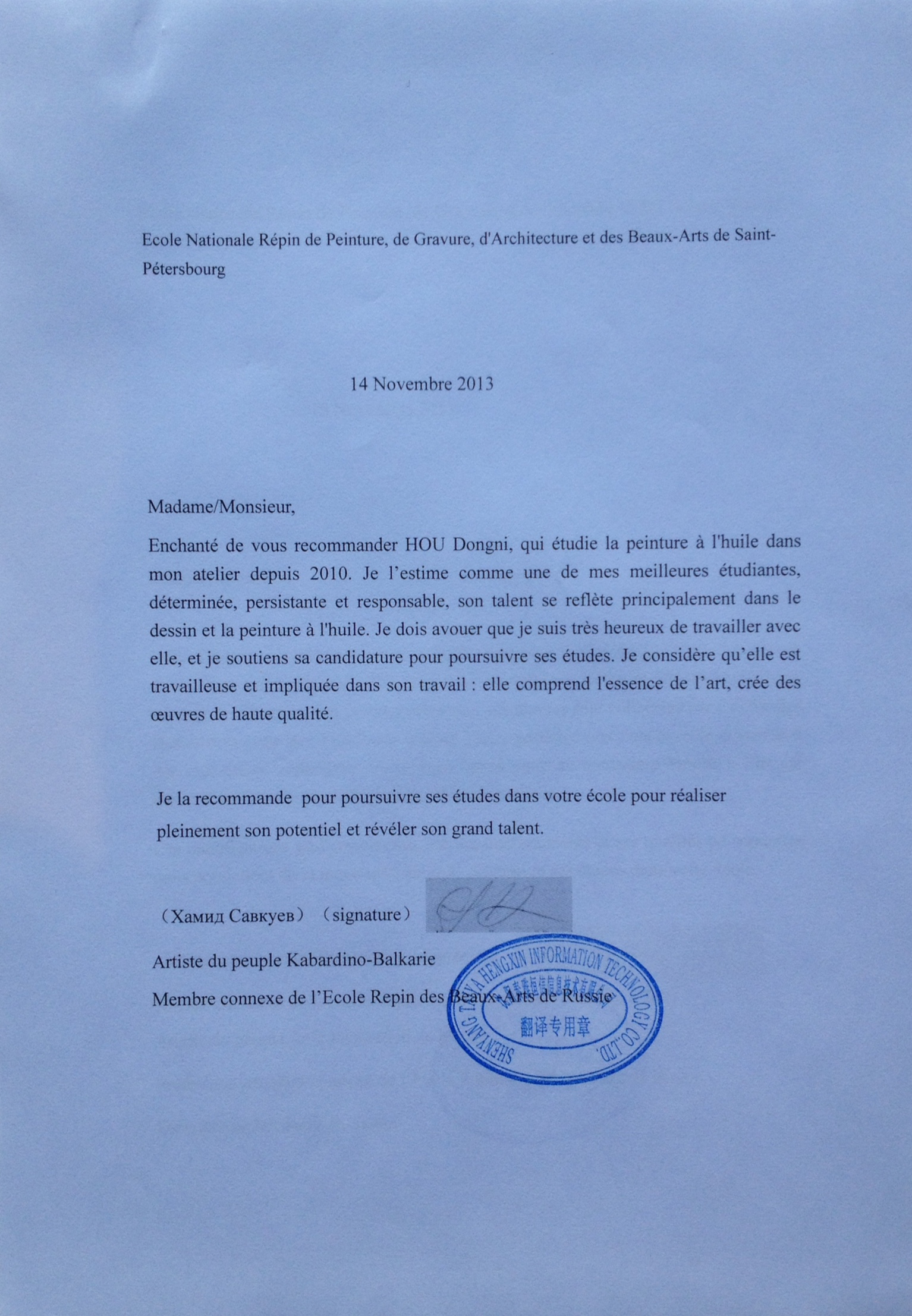 Traduction lettre cavkuev